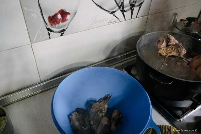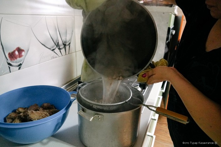 Ждем, когда сварится картошка, а потом достаем и ее из казана.