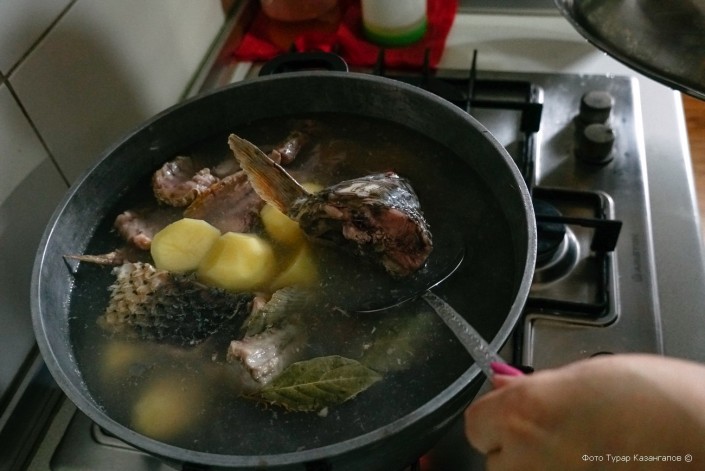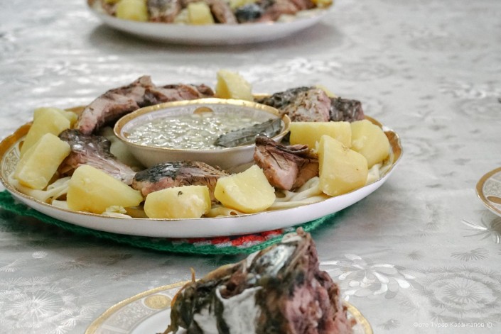Фишбармак - это тот же самый бешбармак, только из рыбы. То же тесто, та же картошка, тот же лук, только вместо мяса - рыба. Тот, кто ни разу не пробовал в своей жизни фишбармак (название современное, получилось из слияния английского fish - рыба, и казахского бармақ - палец), а привык есть только классический вариант, скорее всего, признается, что не может себе представить, каково это рыбное блюдо на вкус. Понимая, что фотографии не передадут запах и вкусовые ощущения, тем не менее мы попытались отснять подробный процесс приготовления фишбармака на его родине - в Атырау. Стоит отметить, что один из главных плюсов бешбармака из рыбы - это то, что готовится он гораздо быстрее, чем тот, что из мяса.