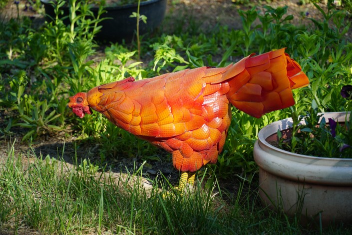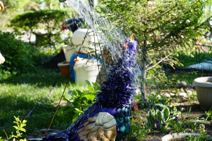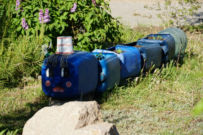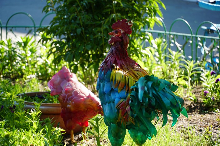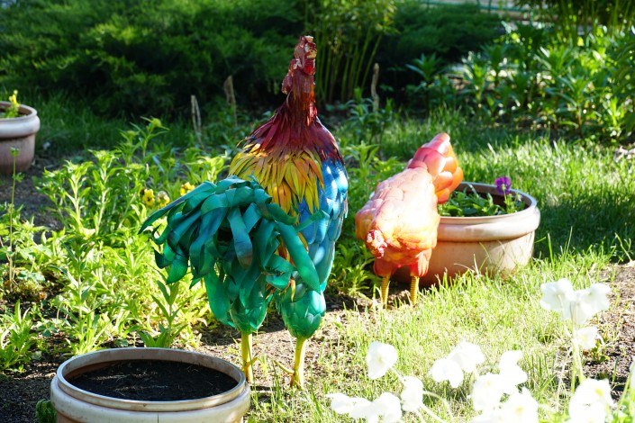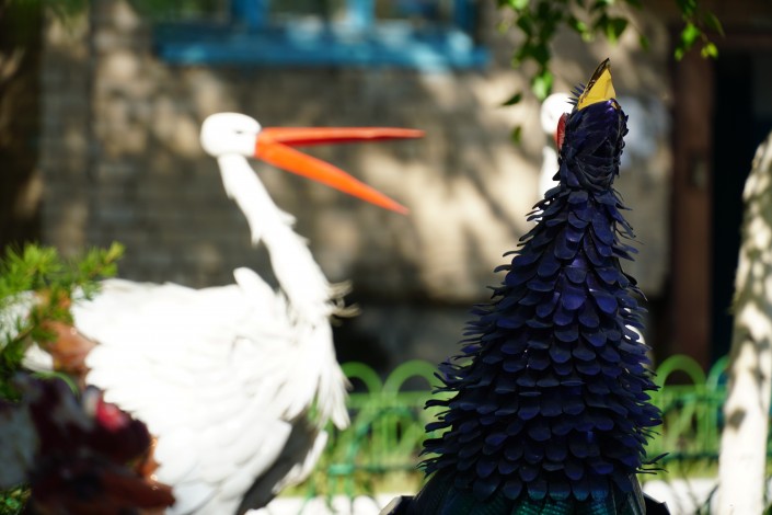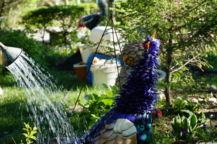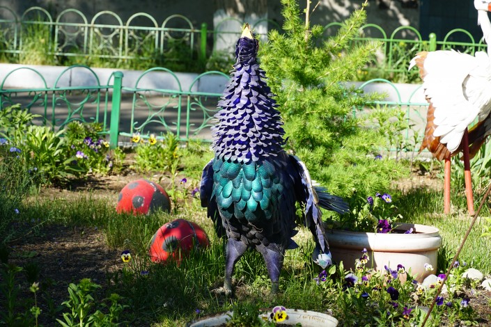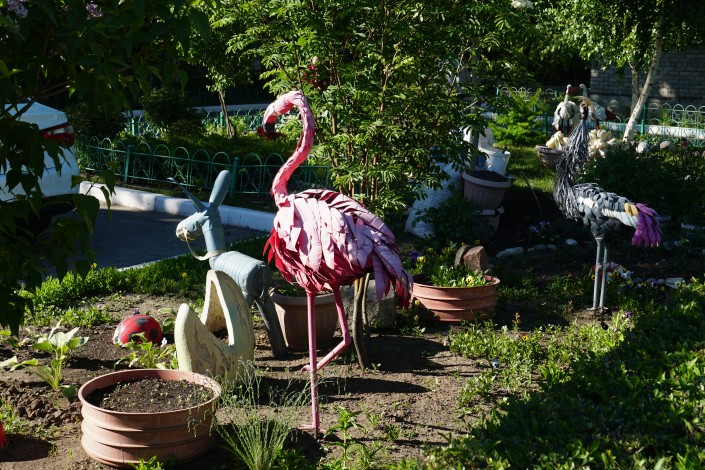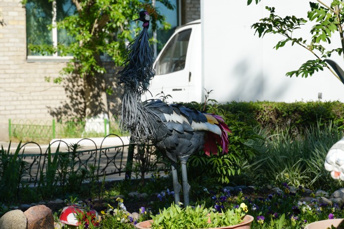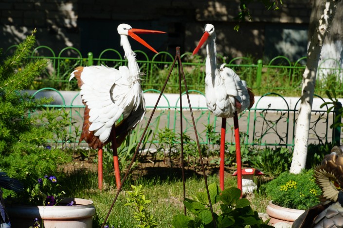 "Аистов долго делали. Здесь мы уже всем домом собирали белые бутылки из-под молока, кефира, чтобы не красить. То есть все остальные у нас крашеные, а вот у аистов натуральный цвет", - говорит Ольга Георгиевна.