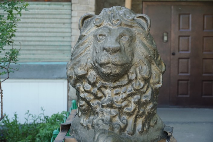 Гордость этого двора - фигуры животных посреди цветущих клумб.