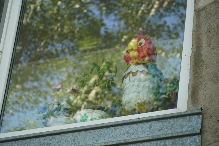 "А это мой Кеша", - говорит Ольга Коняхина, заметив, как я снимаю попугая в окне.