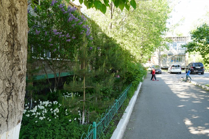 Столица Казахстана. Промышленная зона. Возле завода по производству бетона стоит пыль столбом. Кажется, и домов-то здесь не должно быть. Но вот белая от сухой строительной смеси дорога упирается в старые двухэтажки. Обычно такие дома в быстро растущем Нур-Султане ассоциируются с ветхим и аварийным жильем. Но этот стереотип сразу улетучивается, как только вы оказываетесь во дворе и видите цветущий сад. Заходите в подъезды - а там висят картины. Дома ухоженные, и заметно, что в них живут неравнодушные хозяева. Такую красоту местные жители сумели сделать своими руками. В какой-то момент они отказались от услуг КСК и решили, что отныне будут заботиться о своем жилье сами.