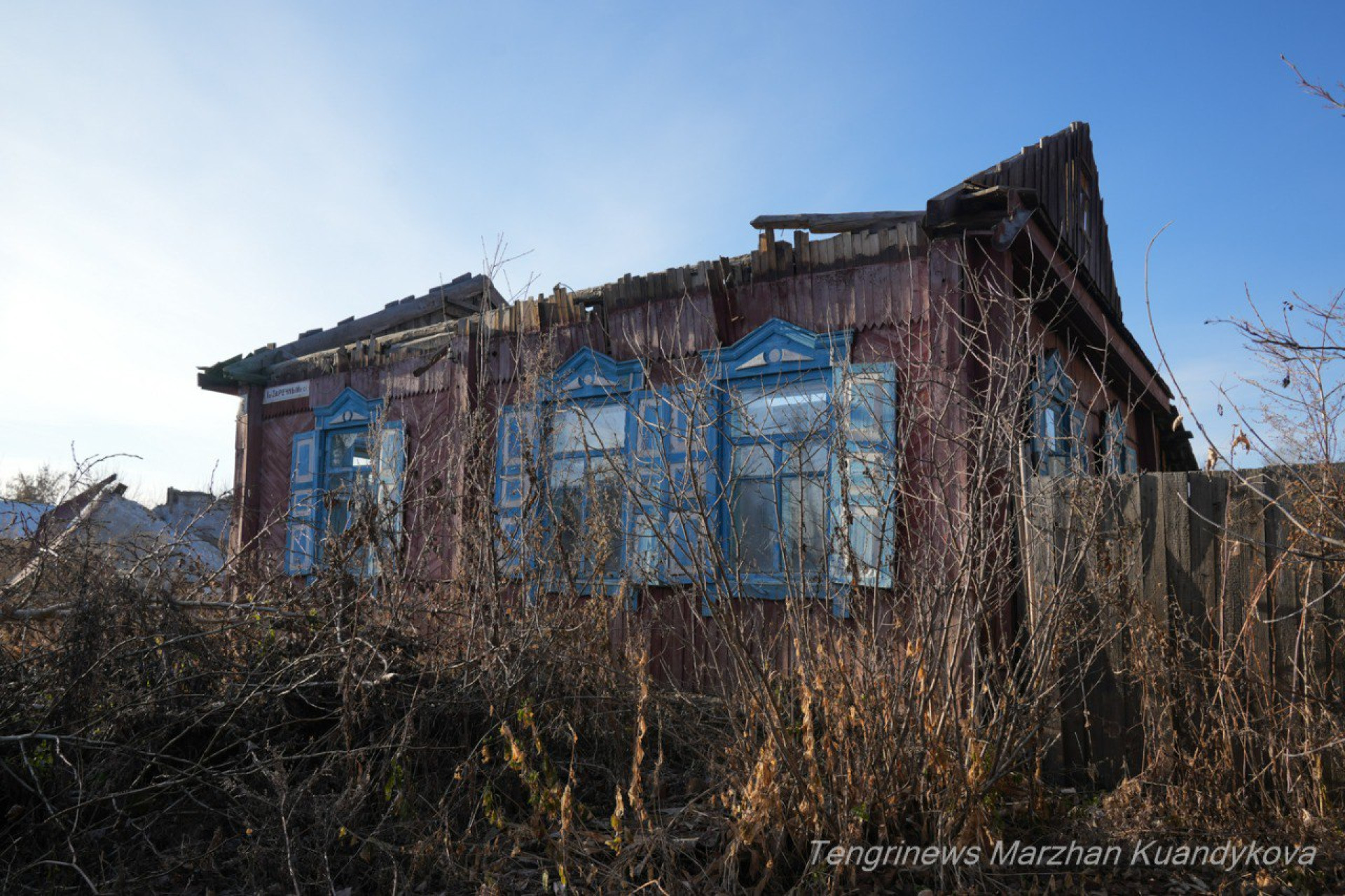 Заречный встречает нас полуразрушенными домами с облупившимися стенами и покосившимися хозпристройками.