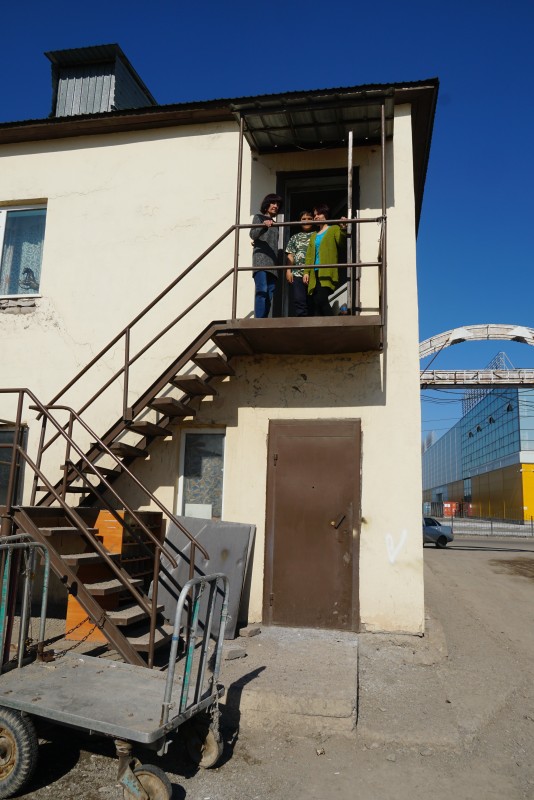 Чтобы попасть к тете Любе, нужно подняться по открытой железной лестнице.
