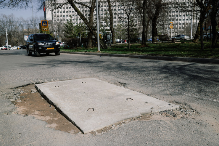 "После зимы, как всегда, всплывают наши знаменитые "подснежники" - выбоины, люки. К сожалению, эта инфраструктура города поддерживалась, но не модернизировалась. Мы эту работу начали", - рассказывал недавно аким Алматы Ерболат Досаев.
