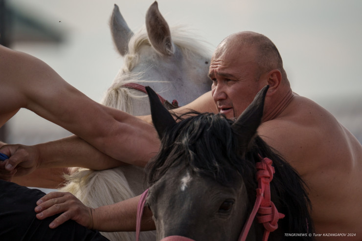 "При борьбе соперников лошади тесно соприкасаются друг с другом. Они не должны кусать друг друга или пытаться сбежать. Не все кони будут биться или кусаться: бывает такое, что могут развернуться, остановиться или вообще спокойно стоять", - объясняет один из спортсменов Биржан Косалиев.