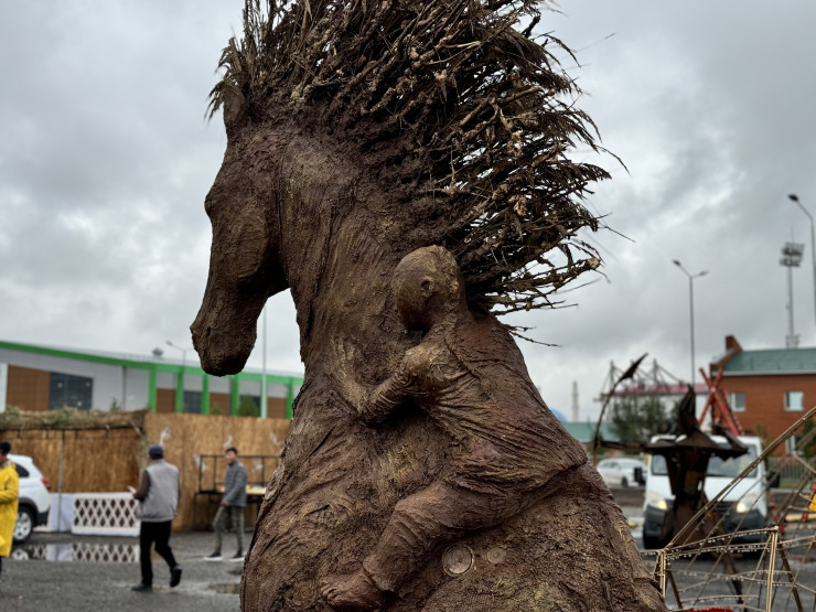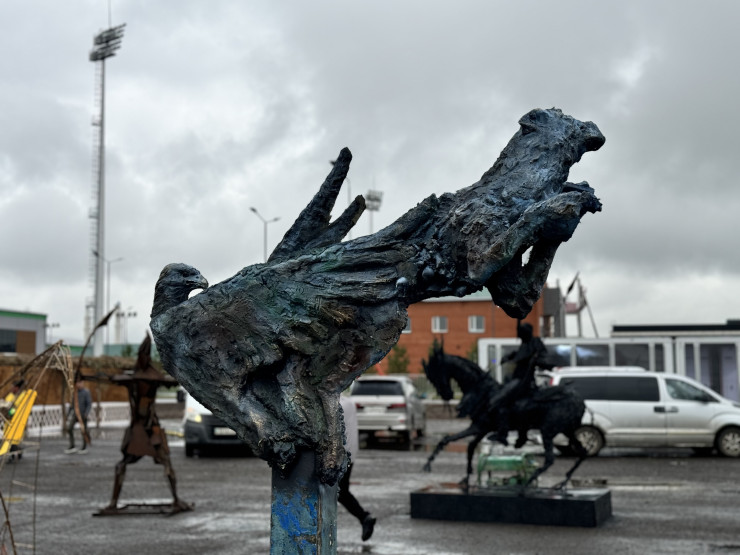 Все открытые тренировки были окончены. На выходе из этно-аула, где будет происходить большинство игр, нас провожали скульптуры героев сегодняшнего репортажа: беркутов и лошадей.