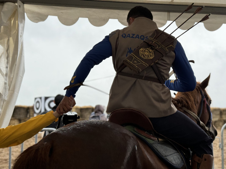 Один из участников - Батыр Бексауыт - двухкратный чемпион мира по конной стрельбе. Его напарника - коня по кличе Шах - взяли в аренду.