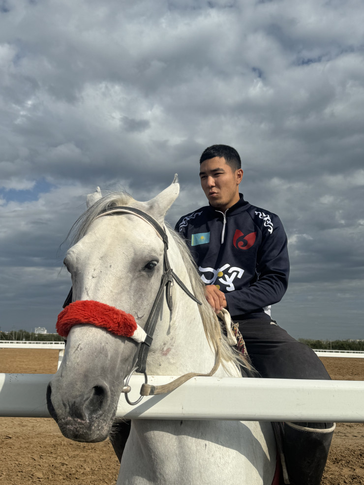 Алмат родом из Туркестанской области. Раньше он занимался дзюдо, но с 2019 года ушел в аударыспак и решил остаться в этом виде спорта. Его напарнику, рыжему коню, уже 8 лет.