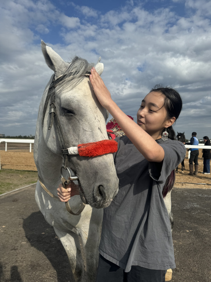Бекнур охотнее рассказывал про свою лошадь, нежели про себя. По его рассказам, конь очень нежный, добрый и податливый. Орлик даже позволил журналистам покататься на нем.