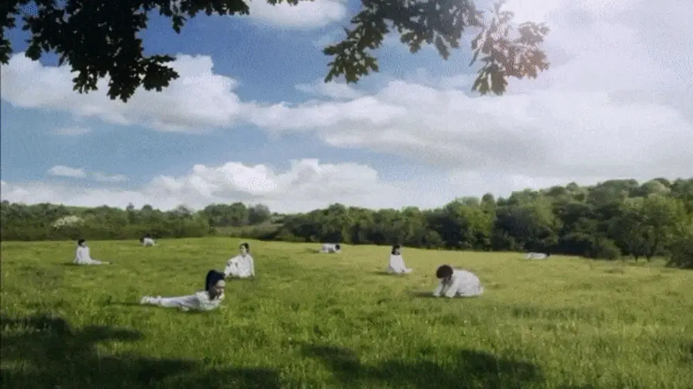 В 37-секундном видео мужчина с телекамерой идет через лес, замечает группу женщин, пьющих воду из ручья и делающих растяжку в поле, и начинает их тайно снимать.