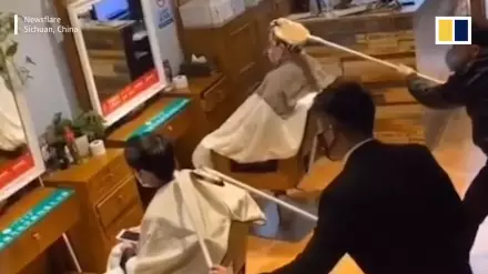 Китайские парикмахеры моют головы клиентов палками из-за коронавируса