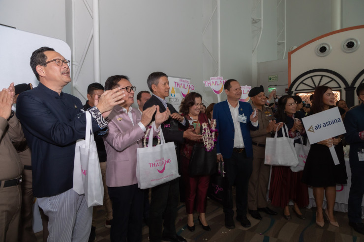 Первую группу казахстанских туристов, которых коснулся безвизовый режим, встречал заместитель руководителя Туристического управления Таиланда Сирипакорн Чиасамут и чрезвычайный и полномочный посол Королевства Таиланд в Казахстане Чатчаван Сакорнсин.
