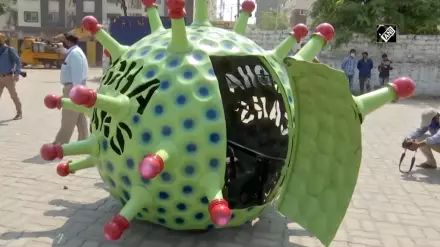 На создание машины изобретателя вдохновили шлемы в виде COVID-19, которые носили полицейские в других частях Индии.