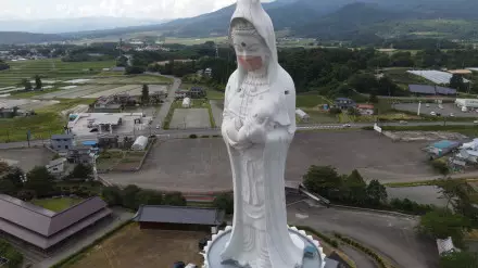 Статуя буддийской богини Каннон, богини милосердия, высотой 57 метров находится в храме Хококудзи Аидзу Бецуин в префектуре Фукусима.
