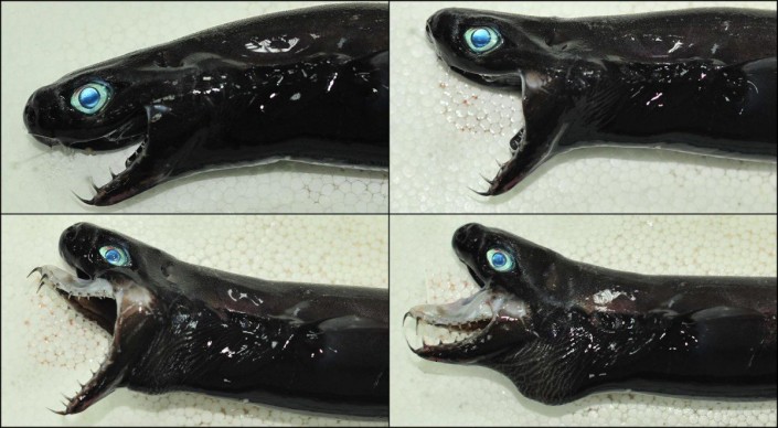 Эти акулы были открыты в 80-х годах прошлого века, а впервые описаны в 1990 году. С тех пор они лишь несколько раз попадались ученым, поэтому остаются плохо изученными, отмечает портал. Акулы-гадюки обитают в северо-западной части океана, днем предпочитают держаться на глубине от 270 до 360 метров, а ночью поднимаются к поверхности воды. В длину Trigonognathus kabeyai достигают 54 сантиметров, а по весу - 750 граммов.