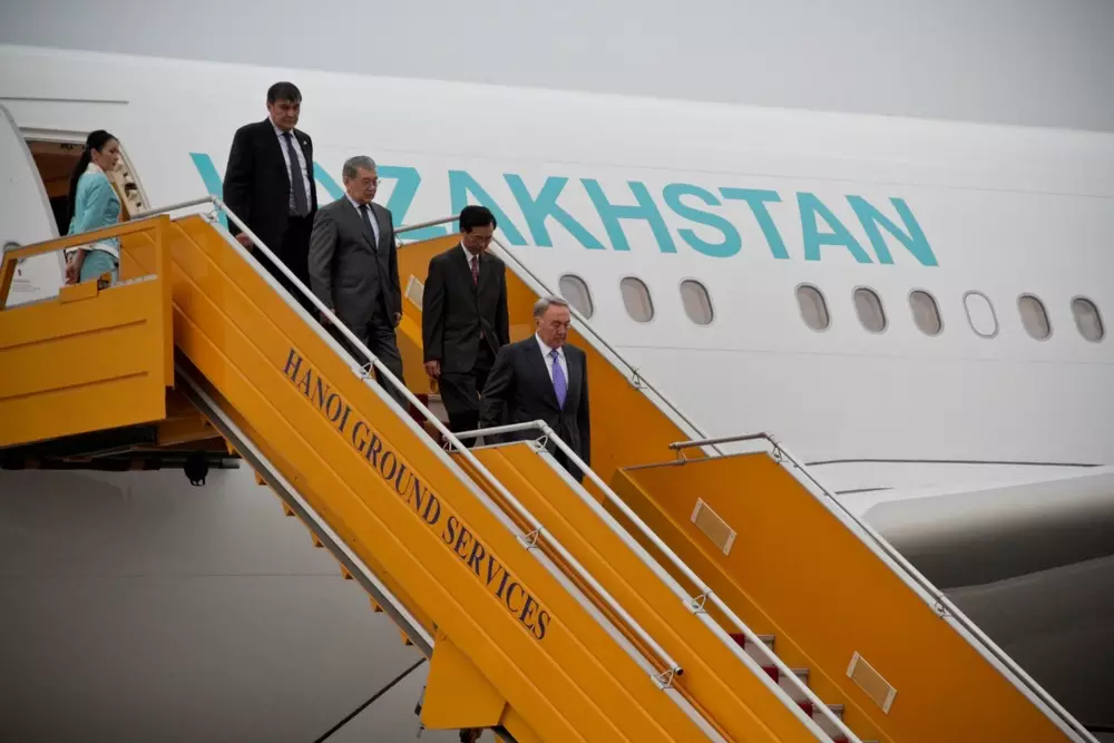Сегодня, 30 октября, Президент Казахстана Нурсултан Назарбаев прибыл с официальным визитом во Вьетнам, передает специальный корреспондент Tengrinews.kz из Ханоя. Церемония встречи в аэропорту сопровождалась почетным караулом. Это первый официальный визит Назарбаева в Социалистическую Республику Вьетнам. Он продлится до 1 ноября.