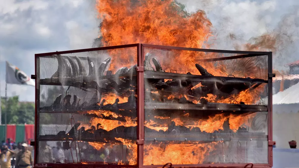 Assam govt burns 2,479 rhino horns in the presence of CM @himantabiswa to bust myths about the usefulness of the horns & prevent poaching.#WorldRhinoDay pic.twitter.com/4dqrTQMnCS
