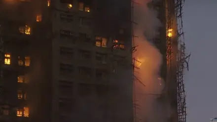 Пожар вспыхнул днём в жилом комплексе Wang Fuk Court в районе Тай По и быстро распространился по строительным лесам и защитной сетке, покрывавшей фасады зданий.