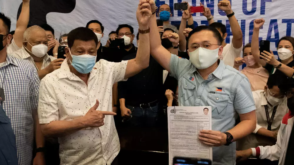 Политик уточнил, что снимает свою кандидатуру, чтобы не создавать "больше проблем" для Дутерте, которого он сравнил с отцом.