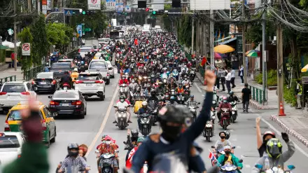 Ранее таксисты Бангкока организовали автомобильную акцию против коронавирусных ограничений в стране.