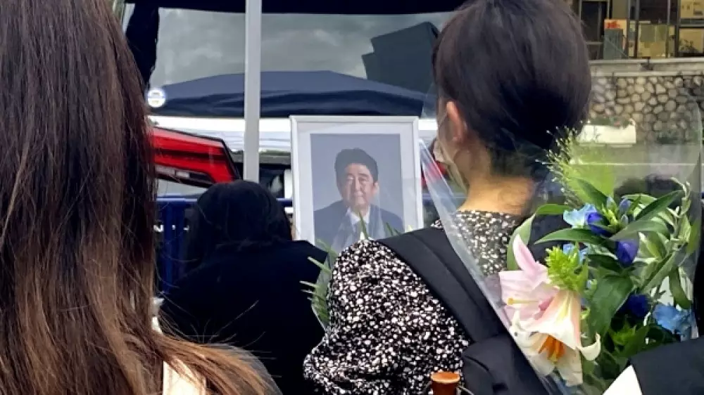 В преддверии официального заседания тысячи людей выстроились в очередь, чтобы возложить цветы и помолиться в честь Абэ у общественной траурной палатки в парке Куданзака рядом с местом церемонии, залом Ниппон Будокан.
