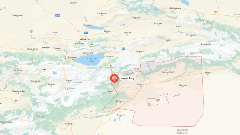 Землетрясение в Алматы: 2 афтершока зарегистрировали в Китае Скриншот Яндекс карты
