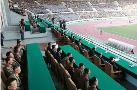 "Руководитель нашей партии и народа, любимый товарищ Ким Чен Ын вместе с товарищем Ли Соль Чжу появился на президентской трибуне", - подписан снимок.
