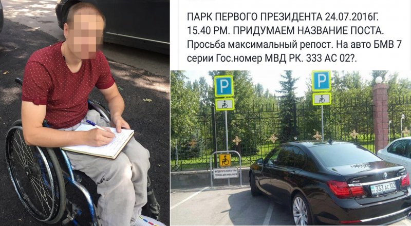 В полиции прокомментировали фото с BMW на парковке для инвалидов в Алматы Недавно в Сети появилось фото BMW, припаркованного под знаком "Парковка для инвалидов". В комментариях пользователи возмутились нарушением ПДД водителем дорогого авто.