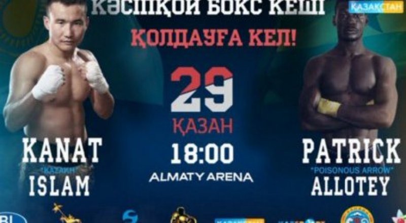 Бой Каната Ислама с Патриком Аллотеем покажет в прямом эфире телеканал "Казахстан" Соперники поборются за титул WBA Fedelatin и чемпионский пояс по версии WBO Intercontinental.