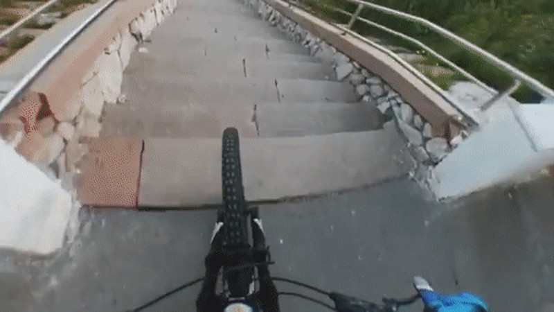 Маунтинбайкер из Алматы (маунтинбайк - горный велосипед) Сакен Кагаров снял на видео скоростной спуск на горном велосипеде по 842 ступеням лестницы