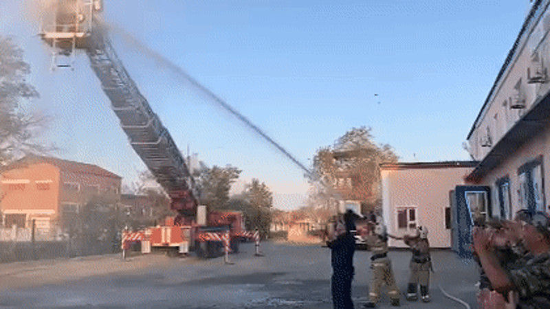 Пожарные в Атырау устроили "мокрые" проводы на пенсию В Атырау пожарные устроили грандиозные проводы на пенсию своему коллеге, 15 лет проработавшему в пожарной охране. По сложившейся традиции пенсионера
