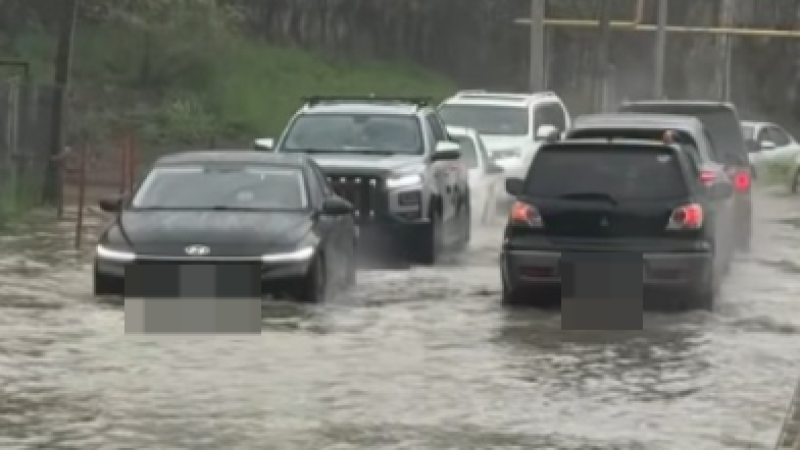 Автомобили “плавают“ из-за дождя в Алматы - видео