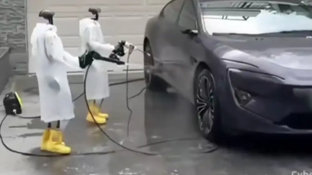 В сети появилось видео, в котором роботы в дождевиках берут губки и шланги, поливают машину, трут кузов и стараются повторять движения человека. Пока "умные сотрудники" заняты делом, их владелец сидит неподалеку с чашкой кофе и наблюдает за процессом.
