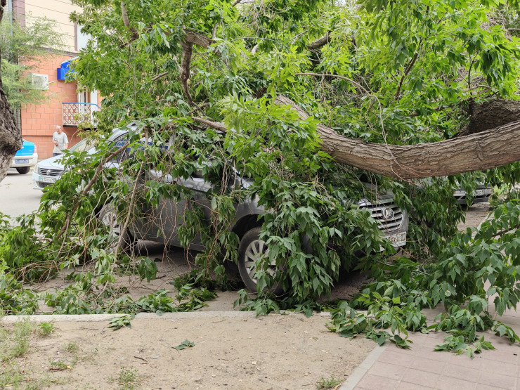 Многолетнее дерево упало на оживленную аллею и повредило несколько припаркованных автомобилей в Костанае, передает Tengrinews.kz со ссылкой на "Алау".