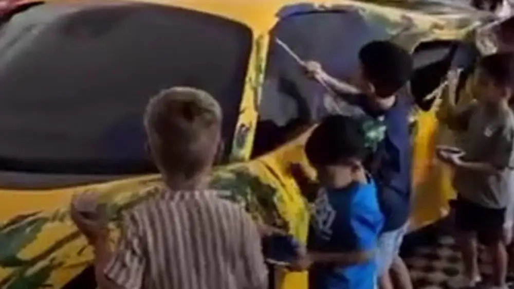 На видео видно, как дети делают этот Ferrari кастомным. Однако не стоит переживать. Как оказалось, краска легко смывается.