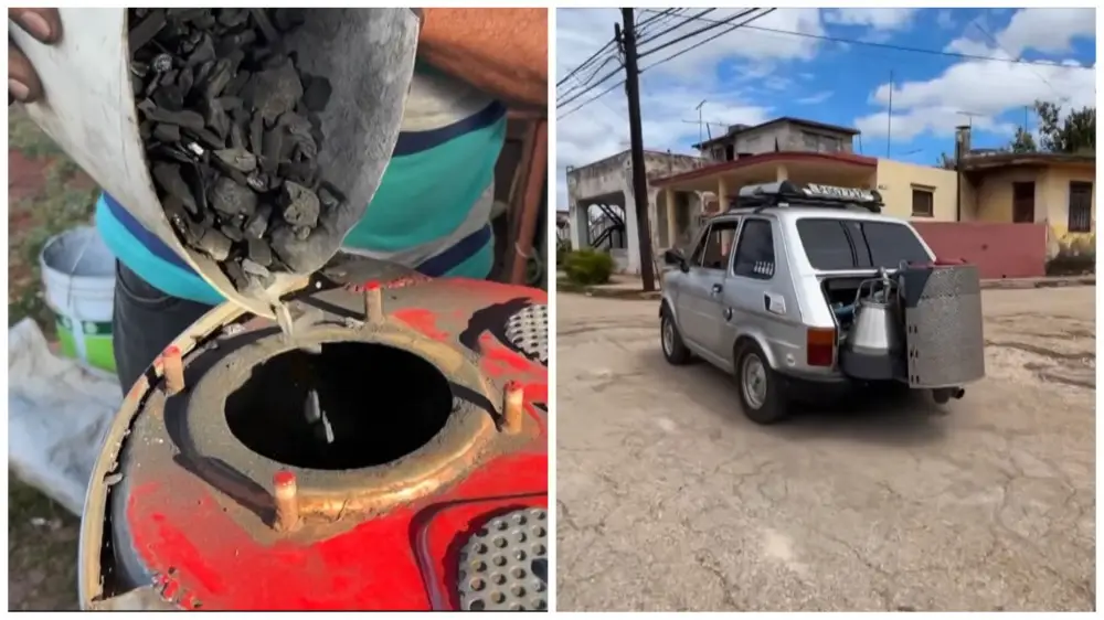 A Cuban resident converted his Polski Fiat 126p to run on coal gas.