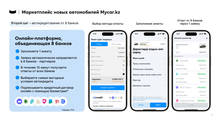 "Мы видим тенденцию, что люди, особенно молодое поколение, больше не хотят тратить время на поездки в дилерские центры, долгий выбор автомобиля. Они стремятся пройти весь процесс легко и быстро. Мы готовы принять вызовы времени и внедрить цифровые технологии во все аспекты нашего бизнеса. Именно поэтому мы создали продукт, который отвечает этим ожиданиям и упрощает процесс покупки автомобиля до пяти шагов", - рассказал директор по развитию IT-продуктов Mycar Group Диас Мухамедиев.