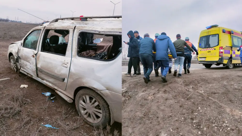 Авария произошла 19 марта 2025 года на трассе Актобе – Оренбург. Таксист с полным салоном съехал в кювет, автомобиль несколько раз перевернулся.