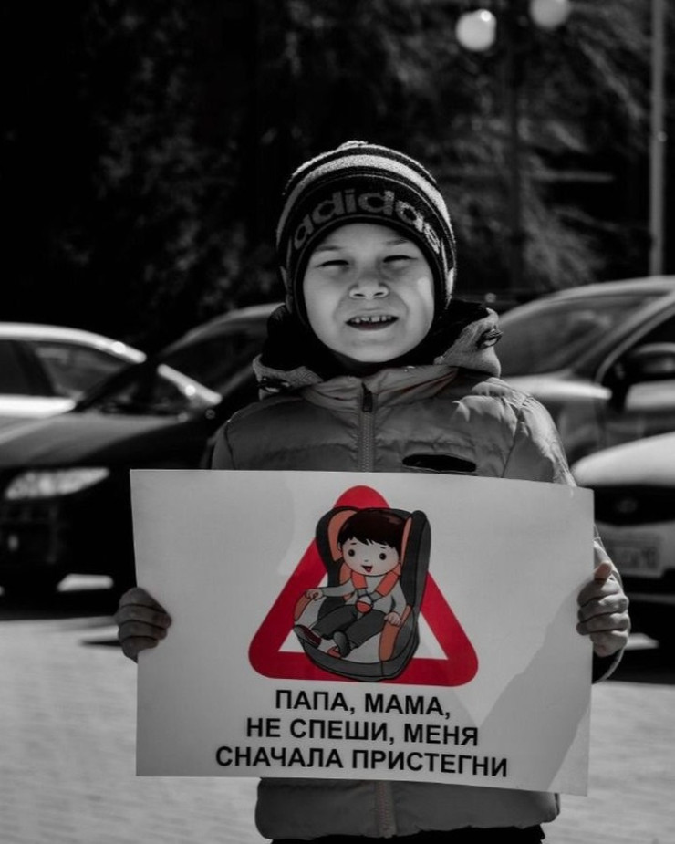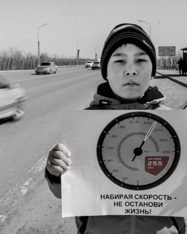 Подростки с плакатами "Папа, мама, не спеши, меня сначала пристегни!", "Не отвлекайся, пешеход!", "Тебя дома очень ждут!", "Набирая скорость, не останови жизнь!" вышли на автодороги города, призывая водителей соблюдать правила дорожного движения.