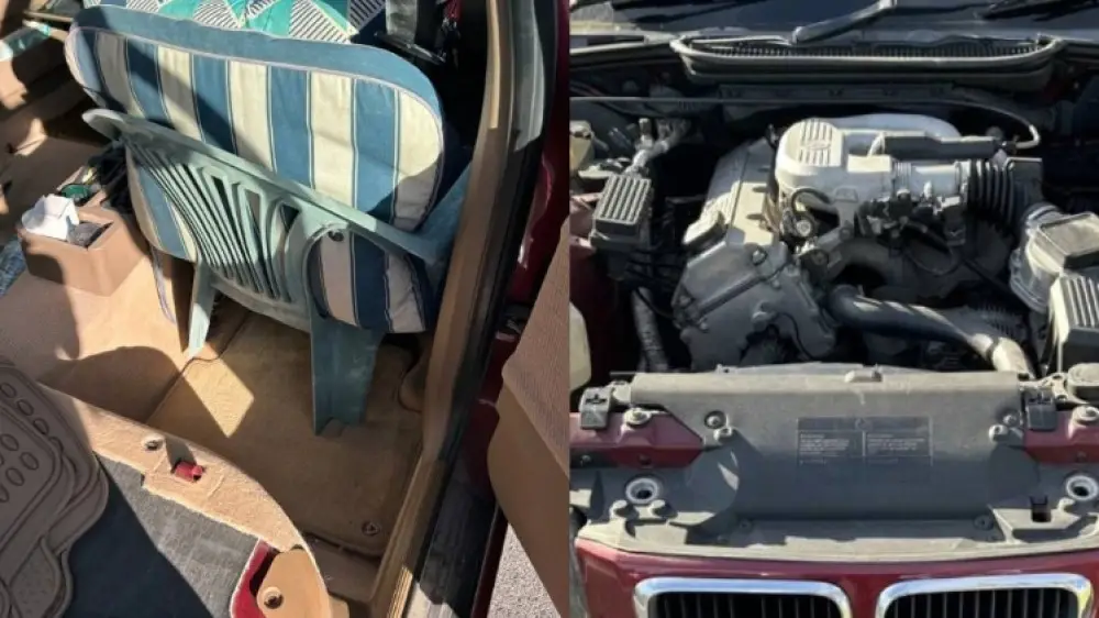 64-летний мужчина решил прокатиться на своей недостроенной BMW 3-Series, но поездка закончилась встречей с полицией. И это неудивительно: у машины не было капота, а вместо водительского кресла стоял обычный пластиковый садовый стул с подушками, передает Tengri Auto.