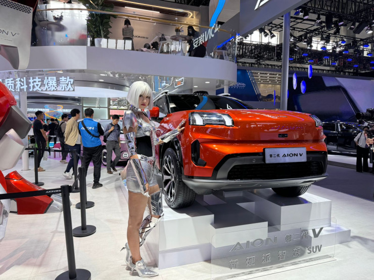 И еще один космический концепт GAC Aion V. Антуража, конечно, добавляет представительница компании.