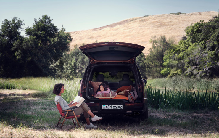 Отличительная черта нового Santa Fe – большая задняя дверь, которая полностью открывается наверх и превращает автомобиль в просторную террасу.