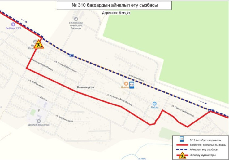 Также сообщается, что №310 маршрут временно не заезжает в поселок Қажымукан.