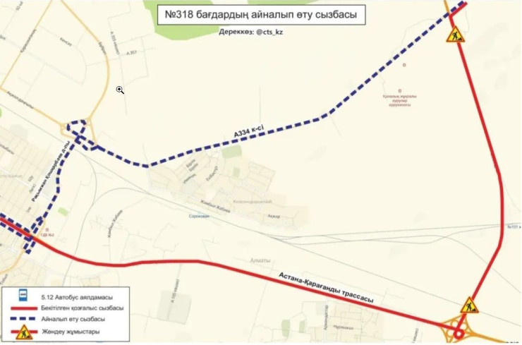 В связи с проведением ремонтных работ на трассе Алматы - Екатеринбург временно изменена схема движения маршрута №318.