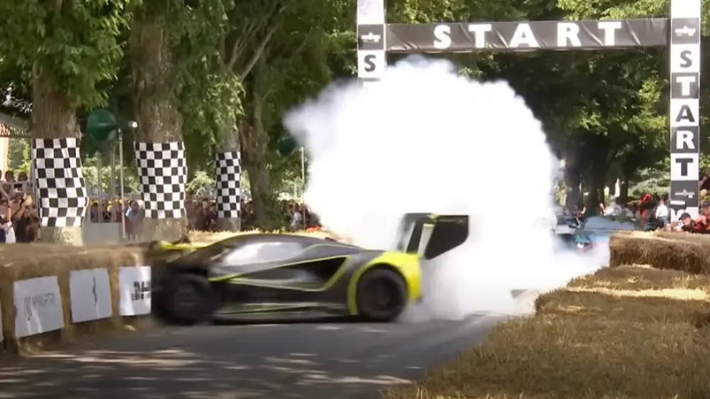 Водитель суперкара Lotus Evija X, который оценили в 2,3 миллиона долларов, не справился с управлением прямо на старте заезда. По данным организаторов, здоровью водителя ничего не угрожает. Что касается суперкара, то, за исключением некоторых повреждений в передней части, он, как утверждается, серьезно тоже не пострадал.