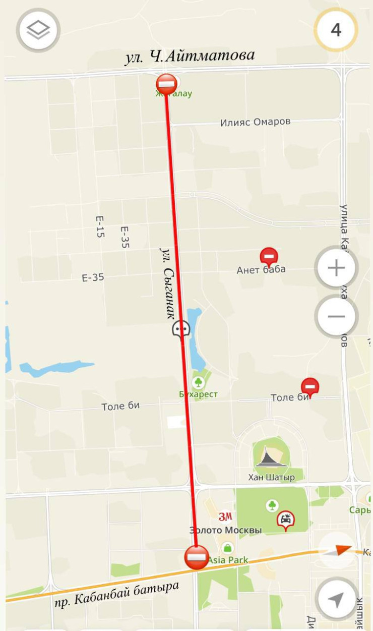 В связи с проведением среднего ремонта дорожного полотна будет частично ограничено движение по улице Сыганак на участке от улицы Айтматова до проспекта Кабанбай батыра.