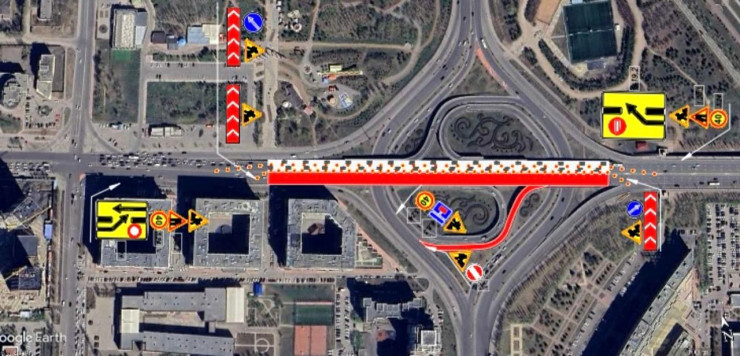 Из-за проведения работ по среднему ремонту дорожного полотна на транспортной развязке М1 будет закрыт участок дороги от улицы Туркестан до моста Аркар.