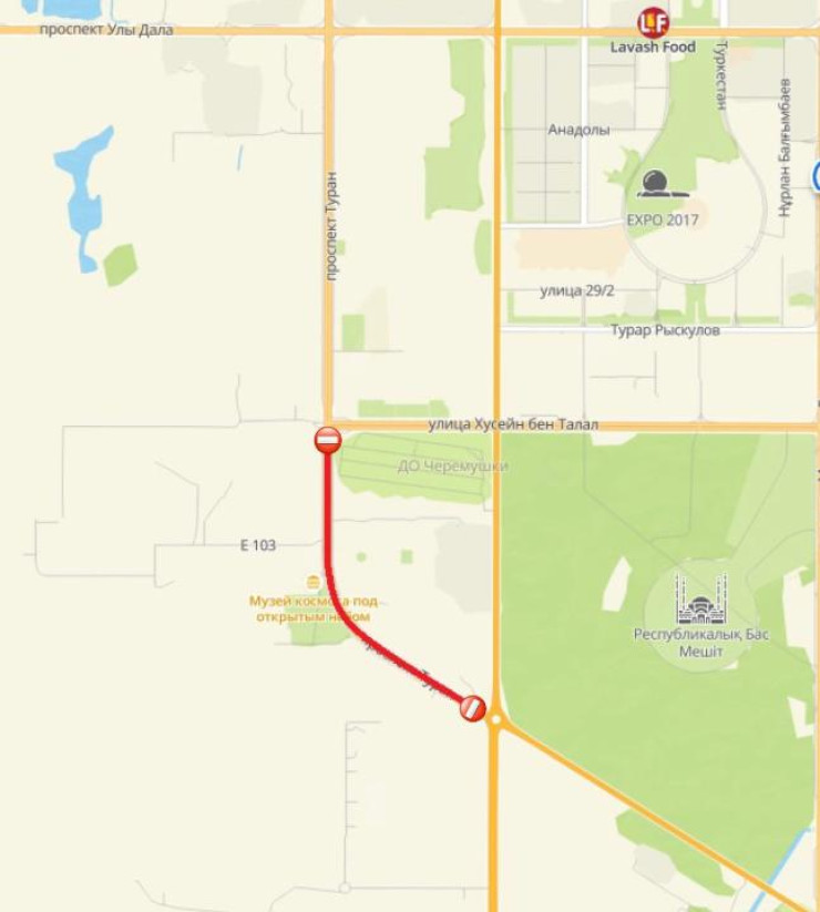 Уточняется, что это связано с проведением работ по среднему ремонту дорожного полотна по проспекту Туран.