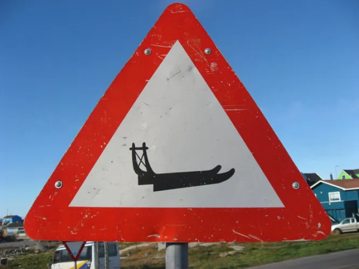 К знакам велосипеда или мотоцикла мы все уже привыкли. Однако в некоторых более заснеженных городах, где-нибудь в Гренландии, вы спокойно можете встретить знак, предупреждающий о санях, которые могут неожиданно пересечь автомобильную трассу.